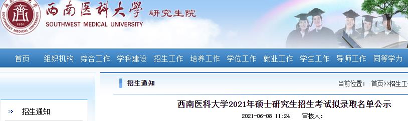 原文标题:西南医科拼搏(中国)2021年硕士研究生招生考试拟录取名单公示