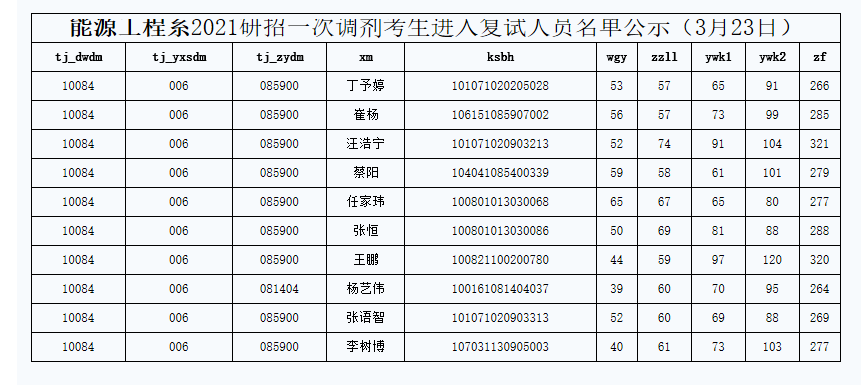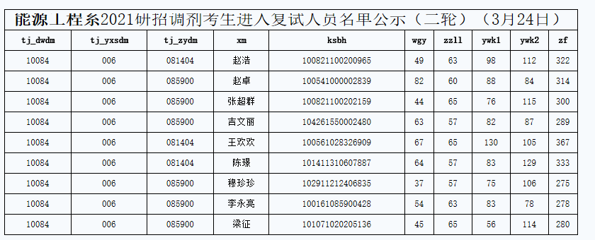 2021拼搏在线官网复试名单:河北建筑工程学院能源工程系2021年硕士研究生进入复试名单