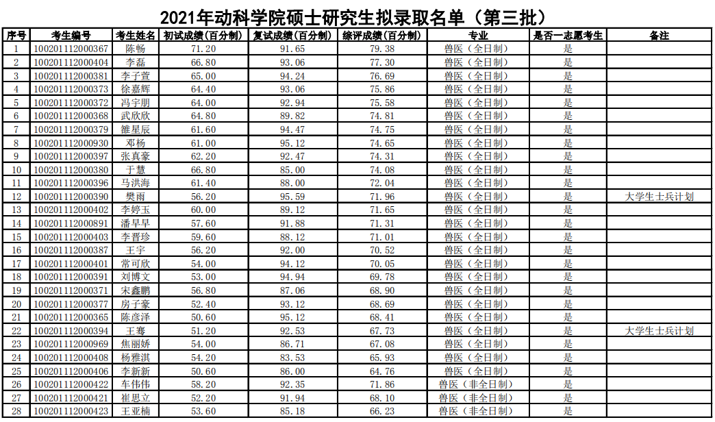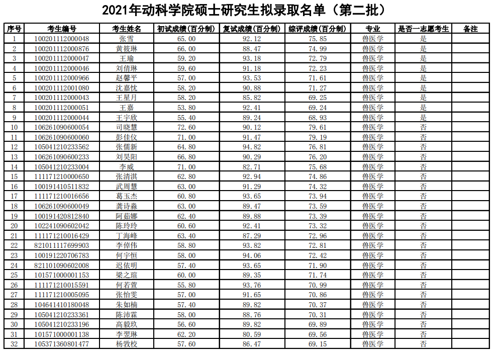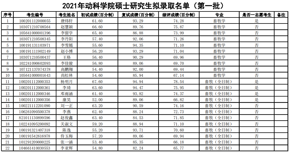 2021拼搏在线官网拟录取名单:北京农学院动物科学技术学院2021年硕士研究生拟录取名单