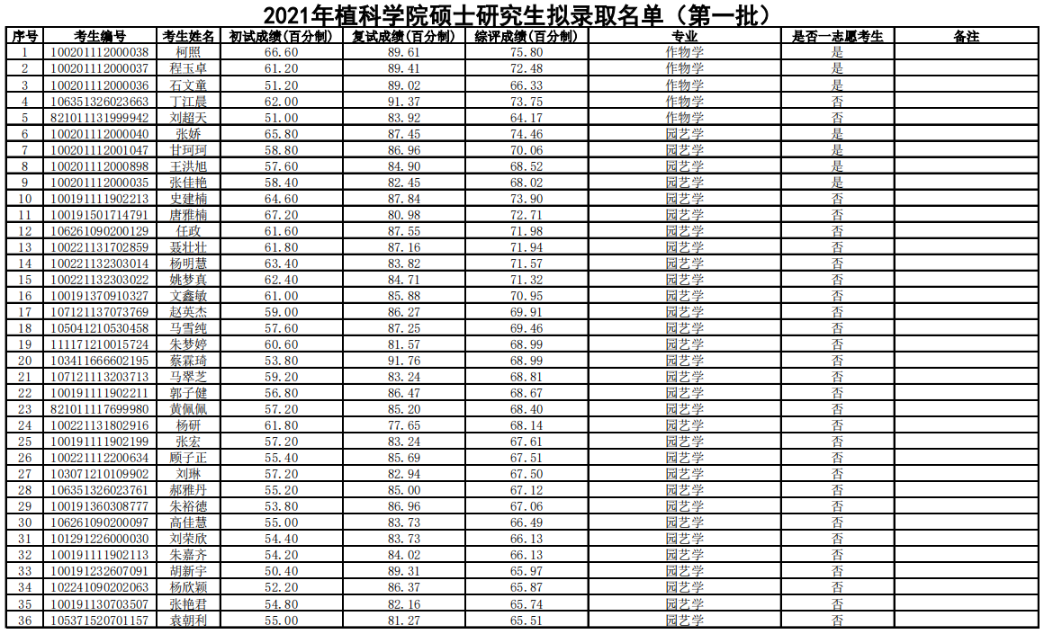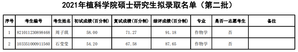 2021拼搏在线官网拟录取名单:北京农学院植物科学技术学院2021年硕士研究生拟录取名单