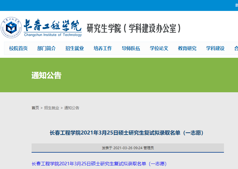 原文标题:长春工程学院2021年硕士研究生复试拟录取名单