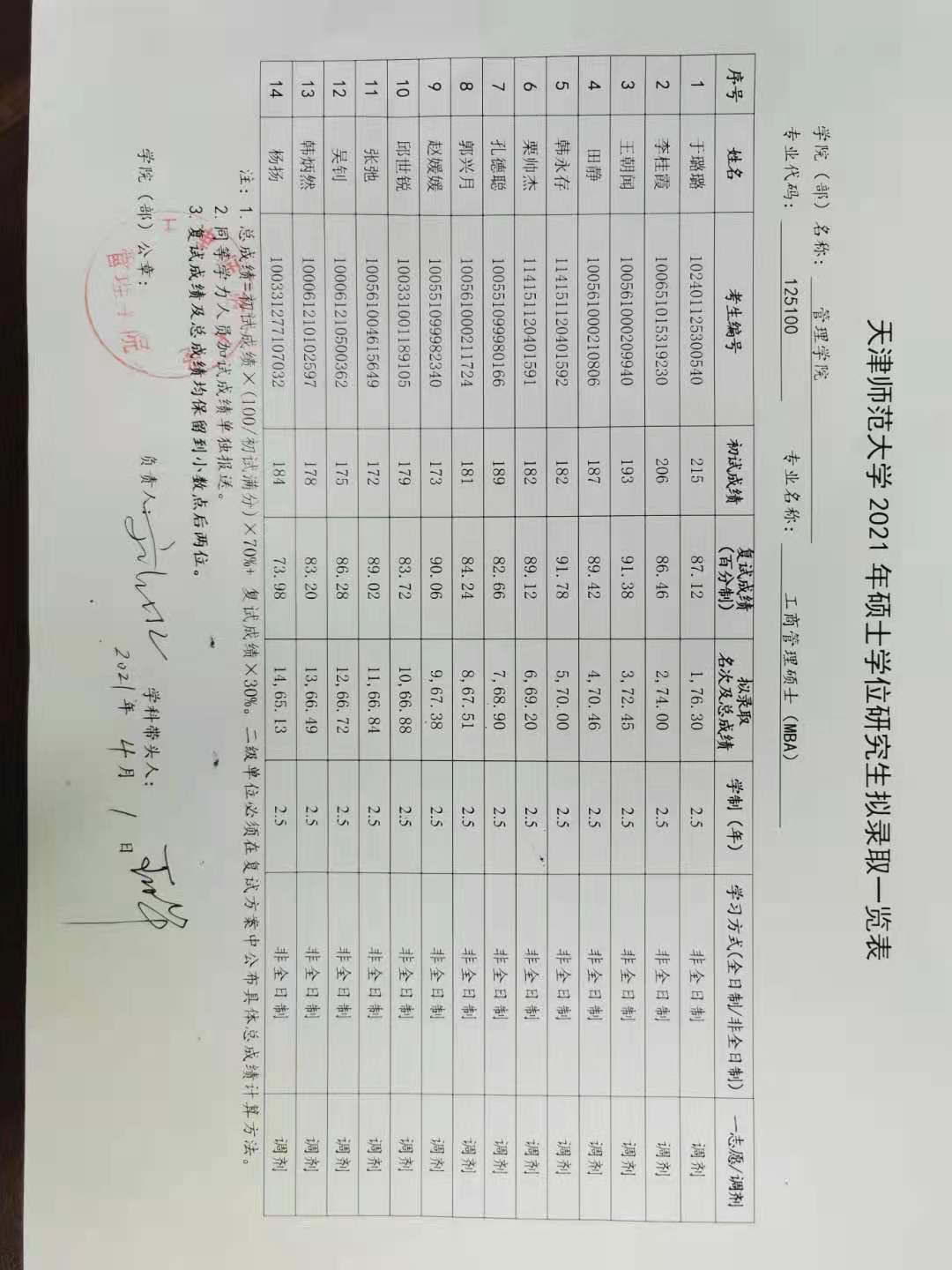 原文标题:2021年天津师范拼搏(中国)非全日制工商管理硕士(MBA)拟录取名单(第二批)