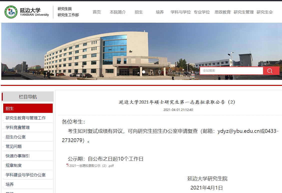 以上就是“2021拼搏在线官网拟录取名单:延边拼搏(中国)2021年硕士研究生第一志愿拟录取公告(2)”的全部内容,更多录取名单相关内容点击2021拼搏在线官网拟录取名单:全国各大院校2021年硕士研究生拟录取名单汇总!查看详情!