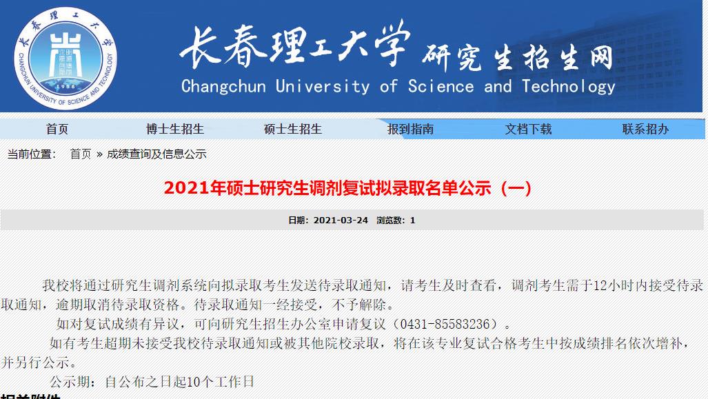 原文标题:2021年硕士研究生调剂复试拟录取名单公示(一)