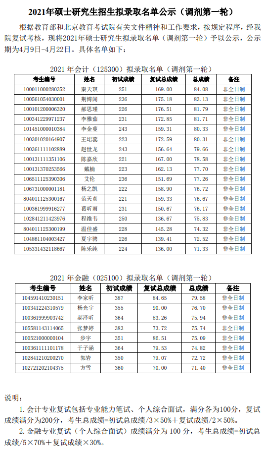 原文标题:2021年硕士研究生招生拟录取名单公示(调剂第一轮)