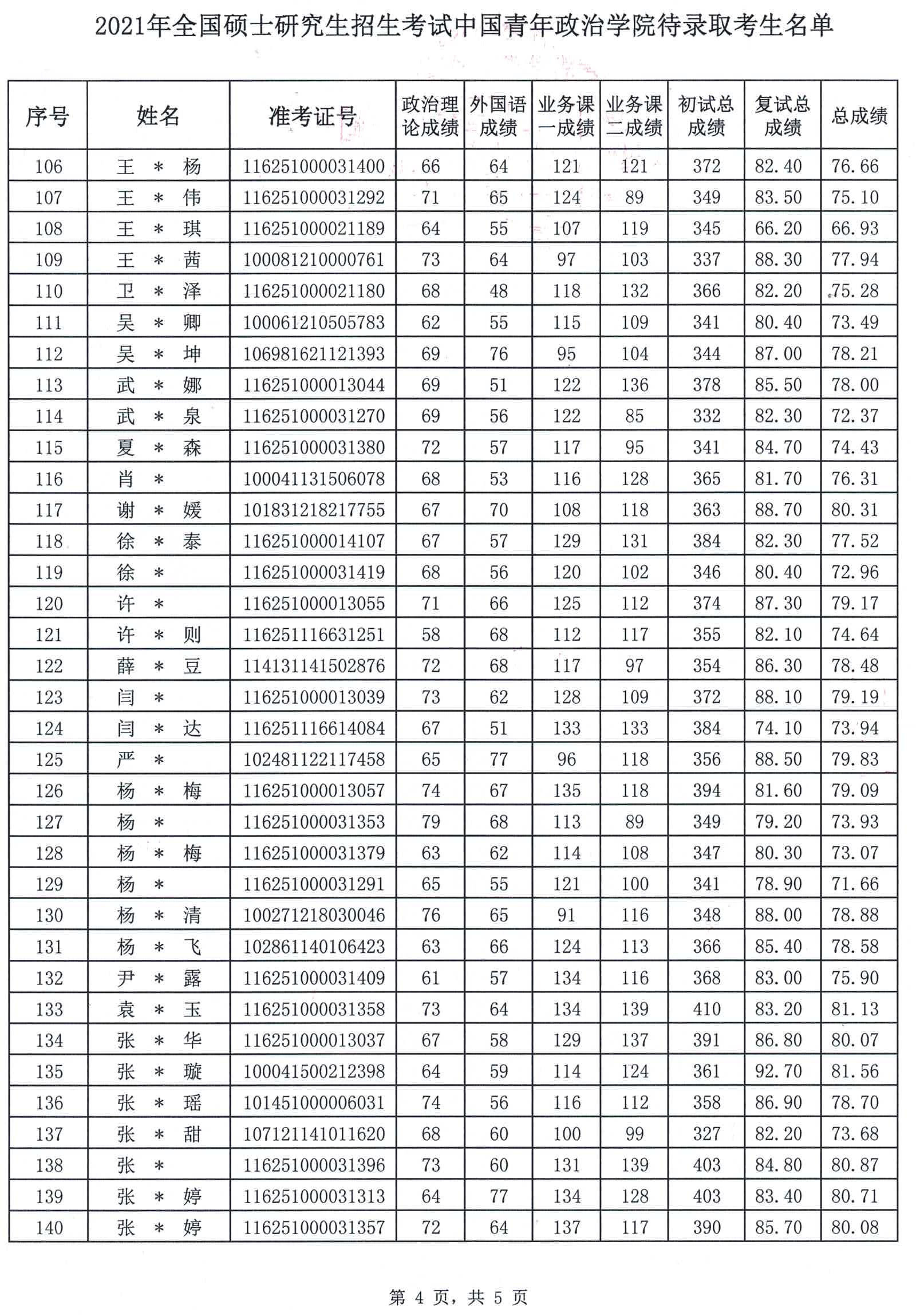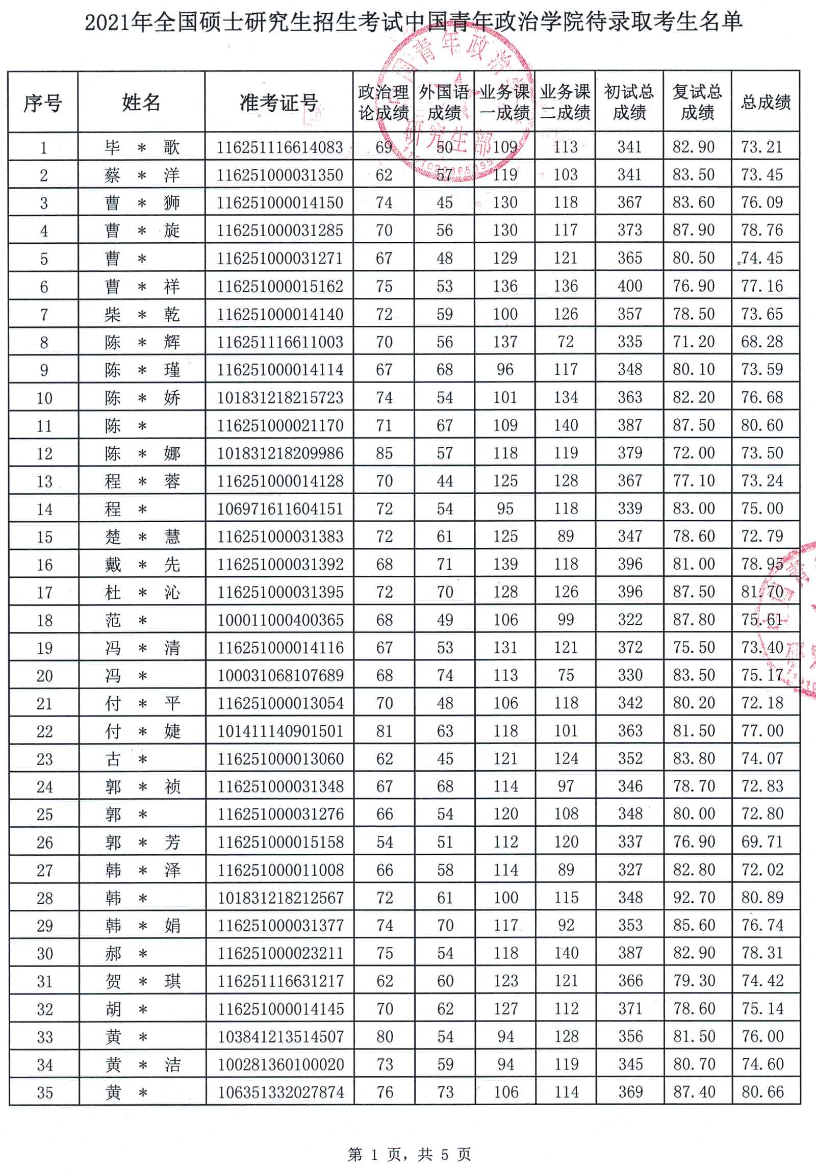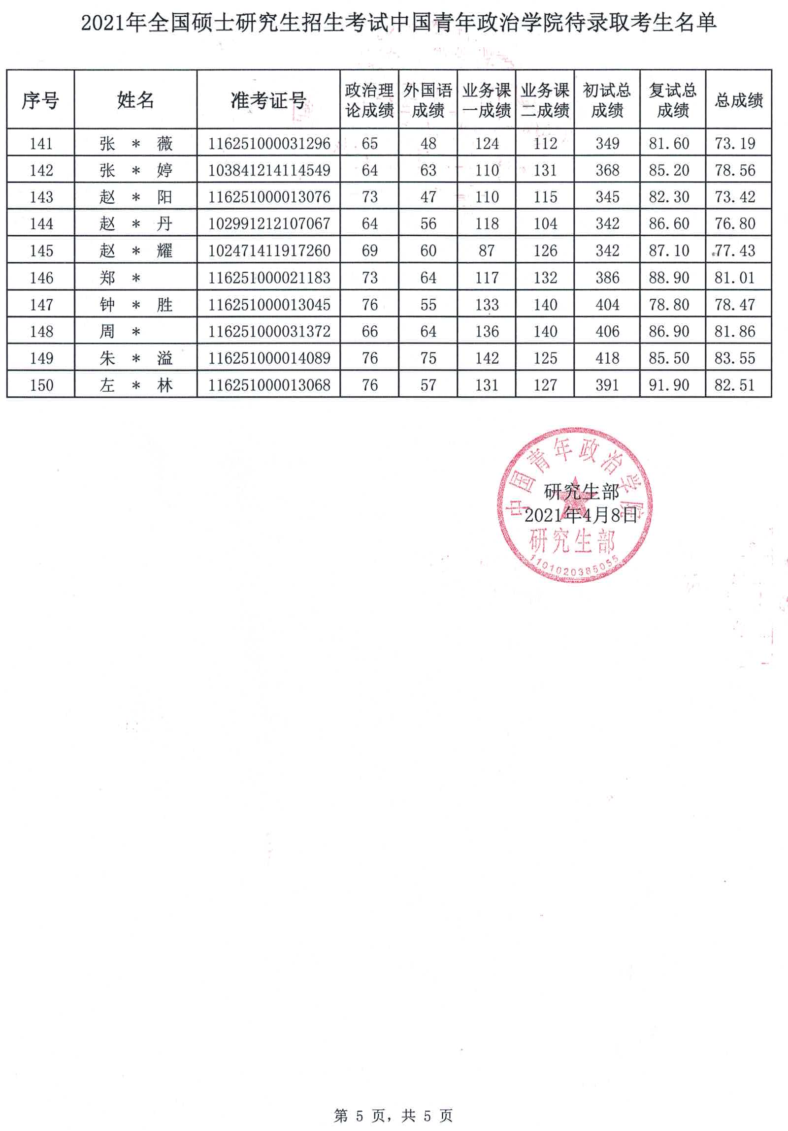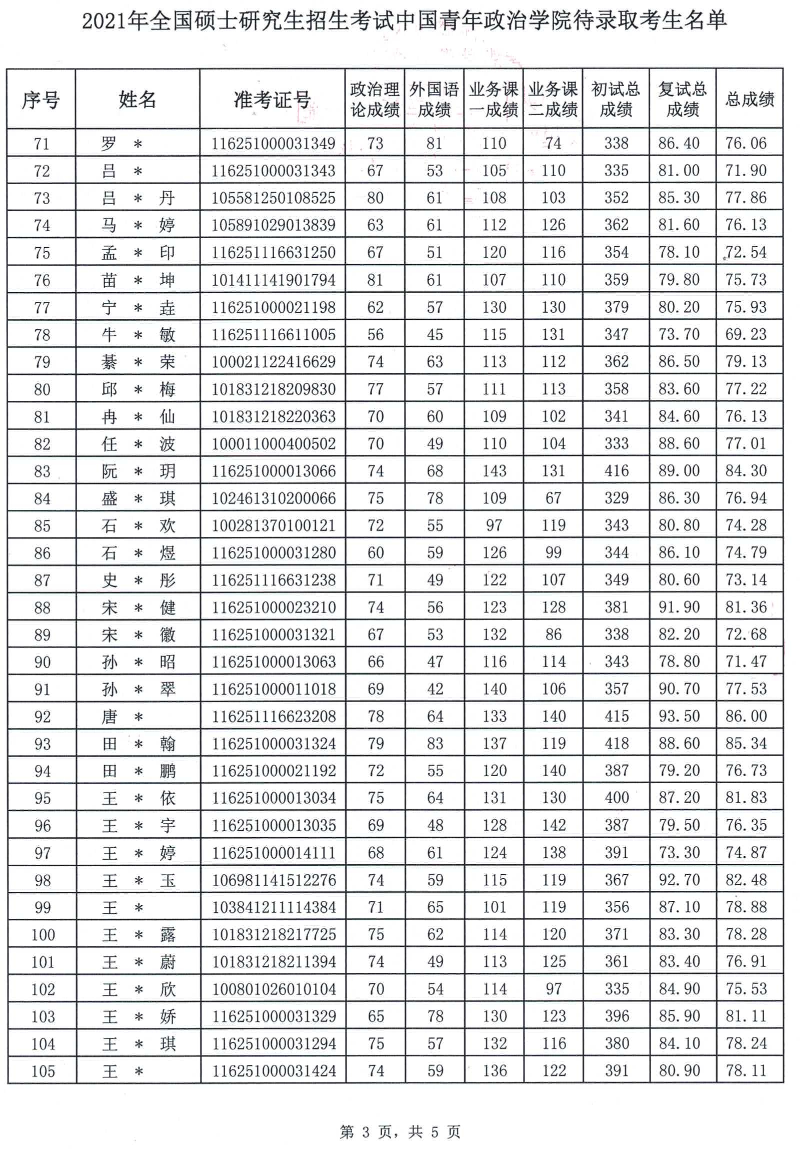原文标题:2021年全国硕士研究生招生考试中国青年政治学院待录取考生名单