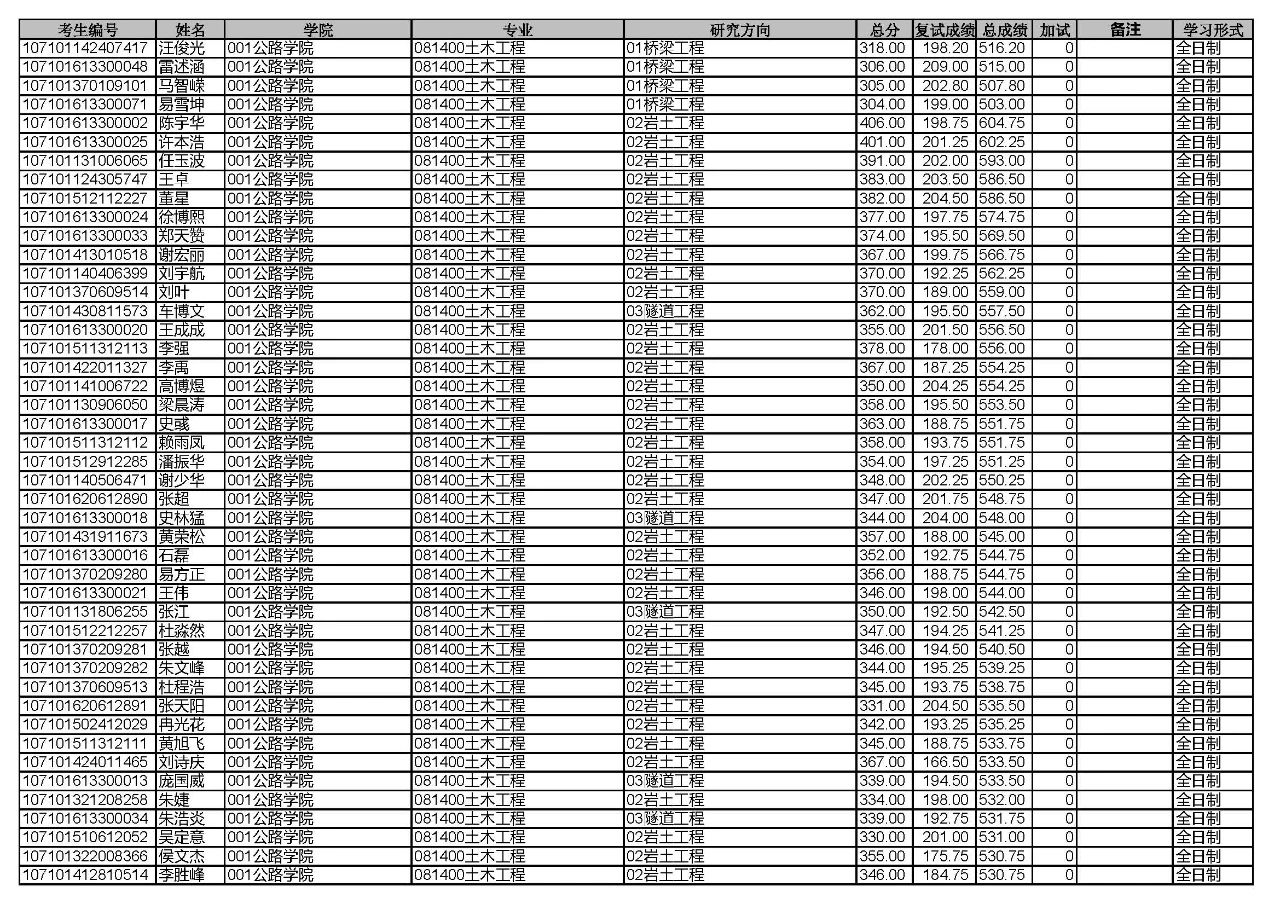 注:1、名单为第一志愿报考我校且复试结果为”拟录取” 资格的考生。