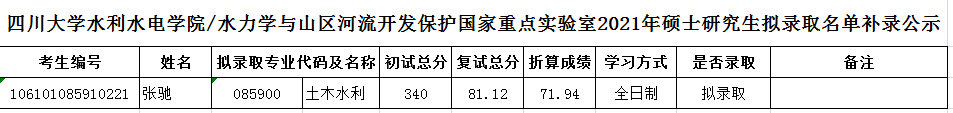 原文标题:四川拼搏(中国)水利水电学院/水力学与山区河流开发保护国家重点实验室2021年硕士研究生拟录取名单补录公示