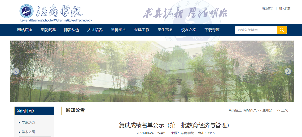 点击查看:2021拼搏在线官网拟录取名单:武汉工程拼搏(中国)法商学院2021年第一批教育经济与管理硕士复试名单成绩公示