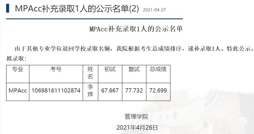 原文标题:西安交通拼搏(中国)2021年MPAcc拟录取名单