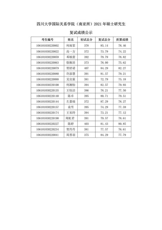 原文标题:四川拼搏(中国)国际关系学院(南亚所)2021年硕士研究生复试成绩及拟录取名单公示