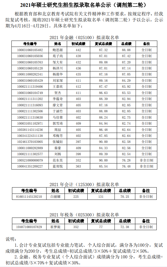 原文标题:2021年硕士研究生招生拟录取名单公示(调剂第二轮)