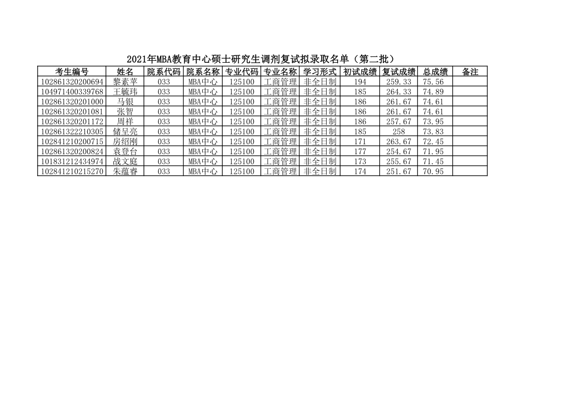 原文标题:2021年MBA教育中心硕士研究生调剂复试拟录取名单(第二批)