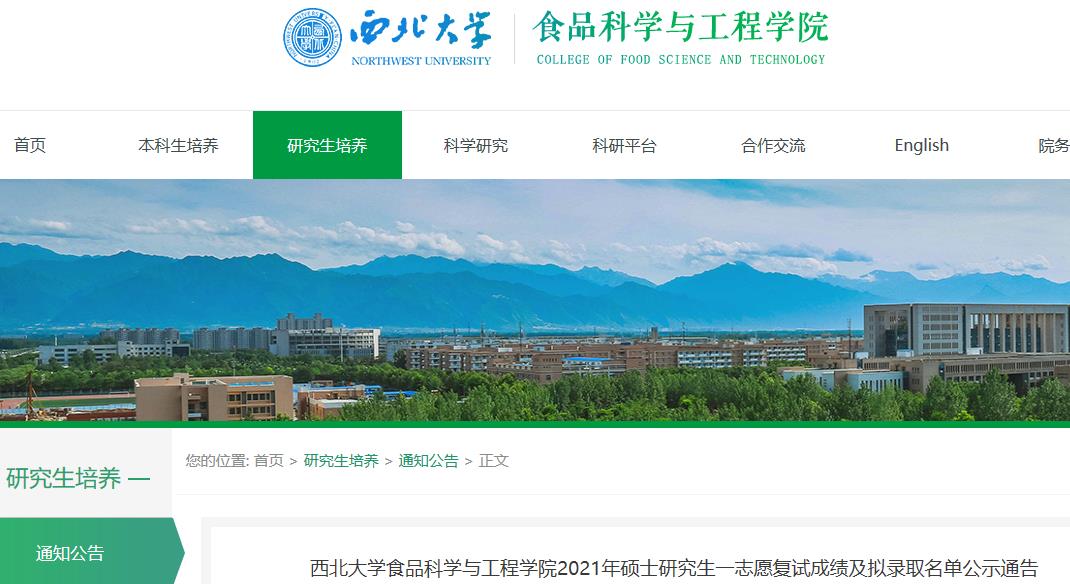 原文标题:西北拼搏(中国)食品科学与工程学院2021年硕士研究生一志愿复试成绩及拟录取名单公示通告