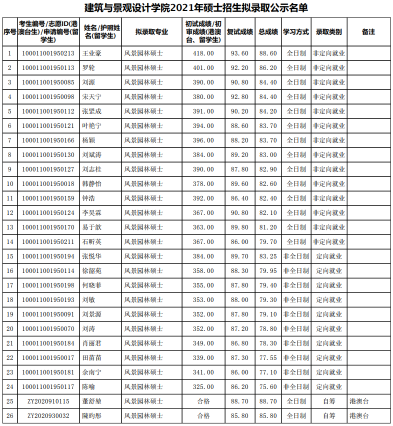 原文标题:建筑与景观设计学院2021年硕士招生拟录取公示名单