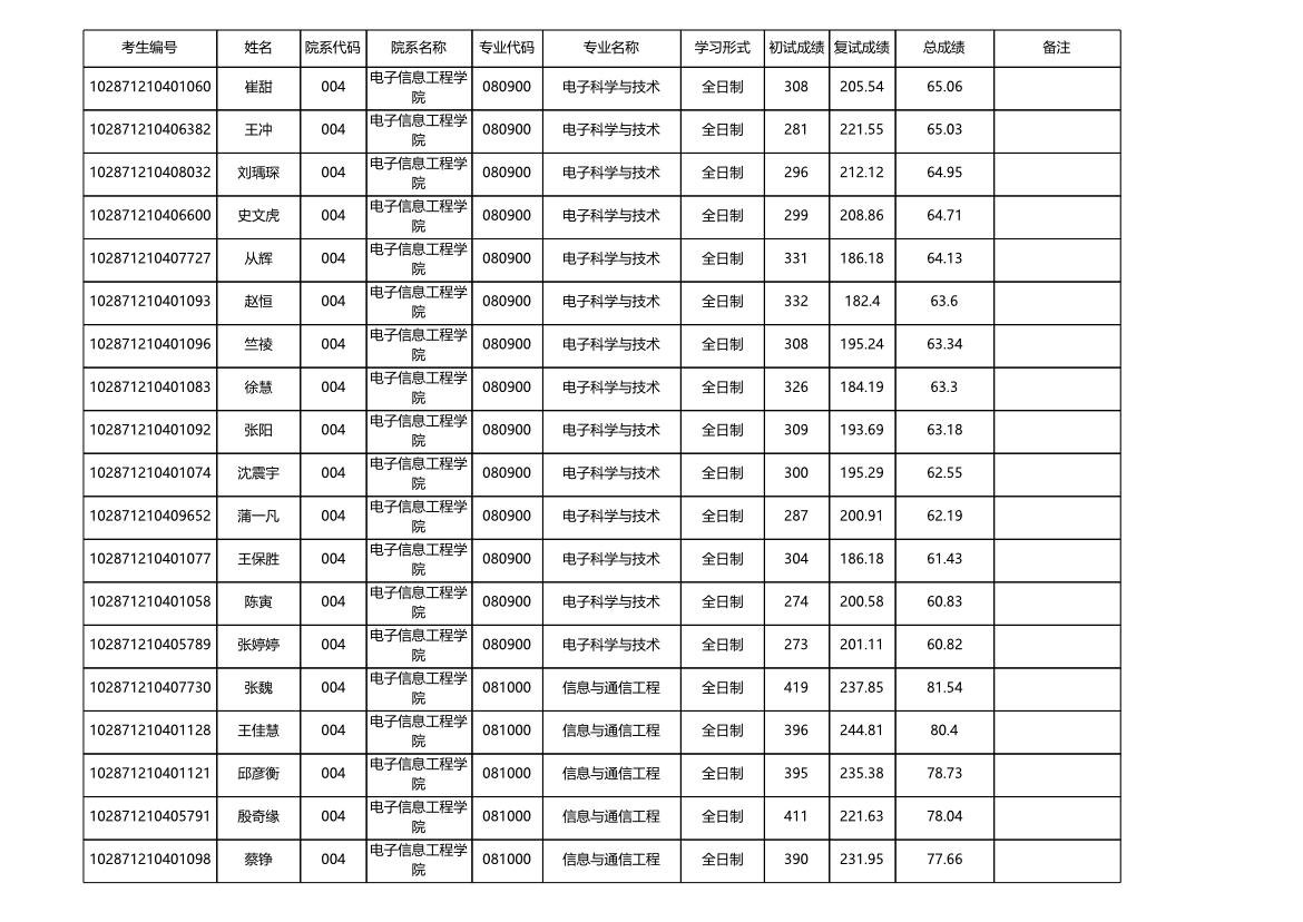 原文标题:电子信息工程学院2021年硕士生招生拟录取名单