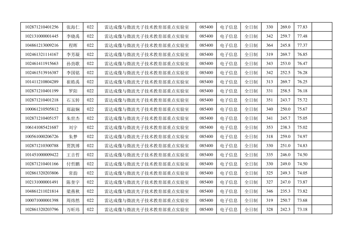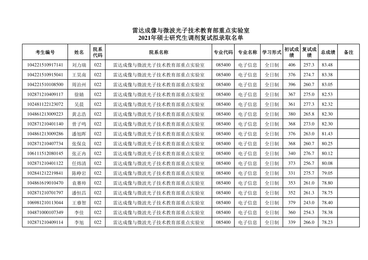 原文标题:雷达成像与微波光子技术教育部重点实验室2021年硕士研究生调剂复试拟录取名单