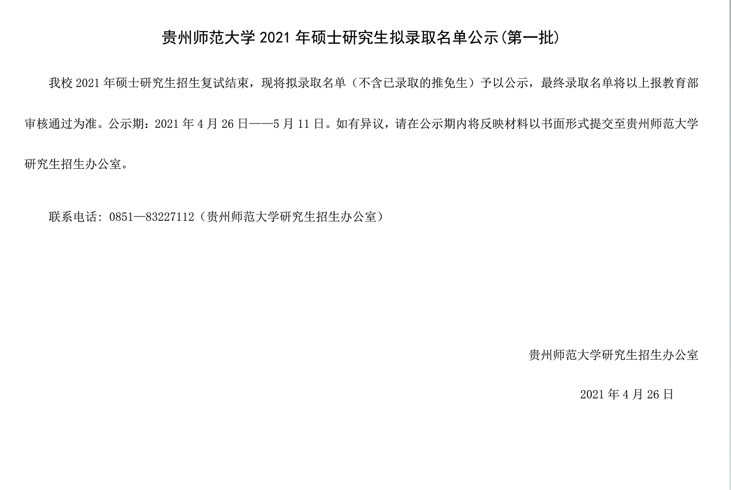 原文标题:贵州师范拼搏(中国)2021年硕士研究生拟录取名单公示(第一批)