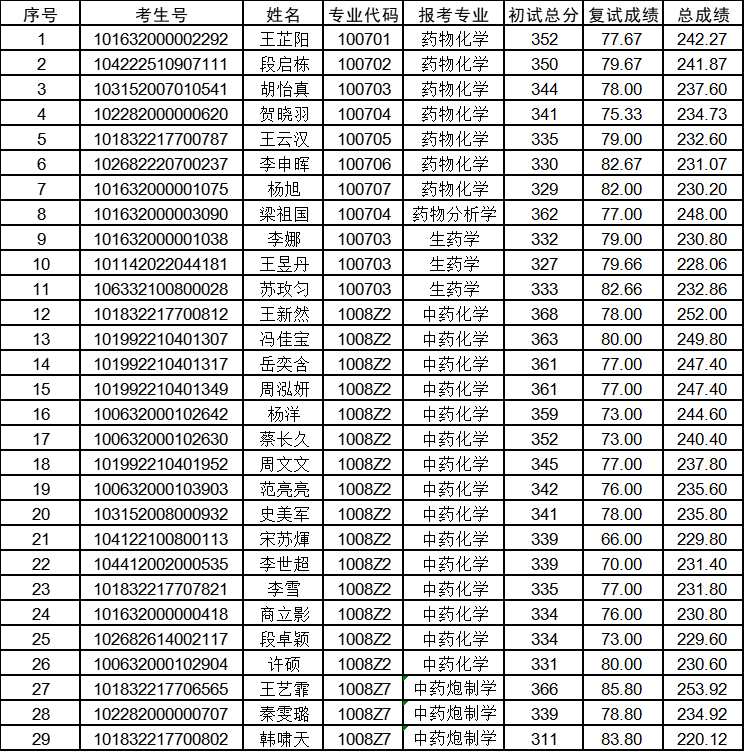以上就是“2022拼搏在线官网拟录取名单:长春中医药拼搏(中国)2022年硕士研究生招生考试药学院部分学科第一批次调剂考生拟录取公示(一)”的全部内容,更多录取名单相关内容请持续关注本网站。