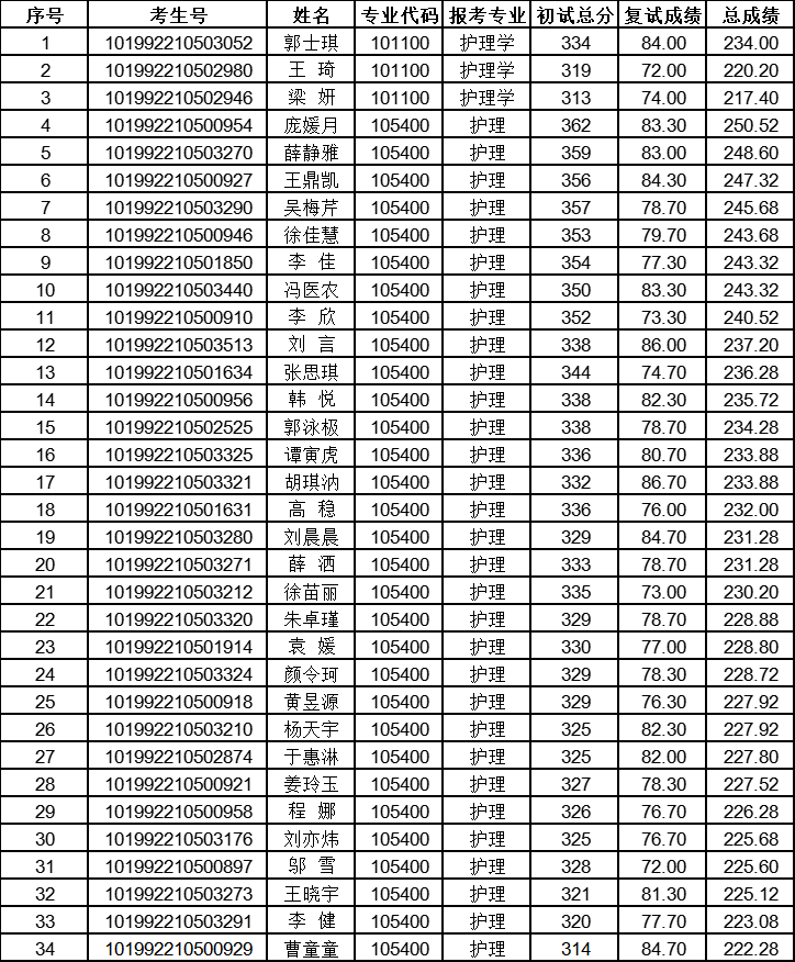 原文标题:长春中医药拼搏(中国)2022年硕士研究生招生考试护理学院一志愿考生拟录取公示