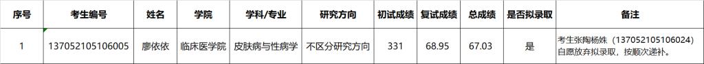 原文标题:成都医学院2022年硕士研究生招生考试拟录取名单(递补)