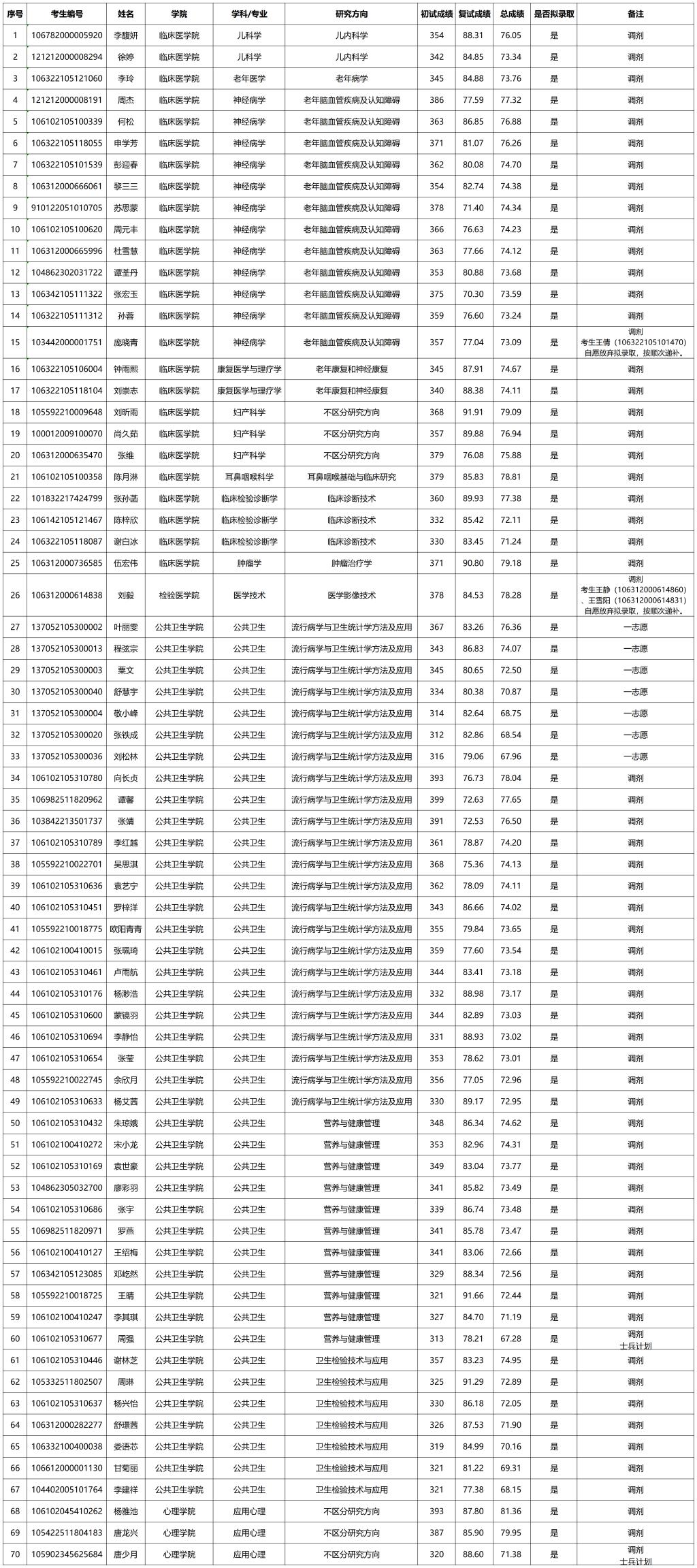 原文标题:成都医学院2022年硕士研究生招生考试拟录取名单(第5批)