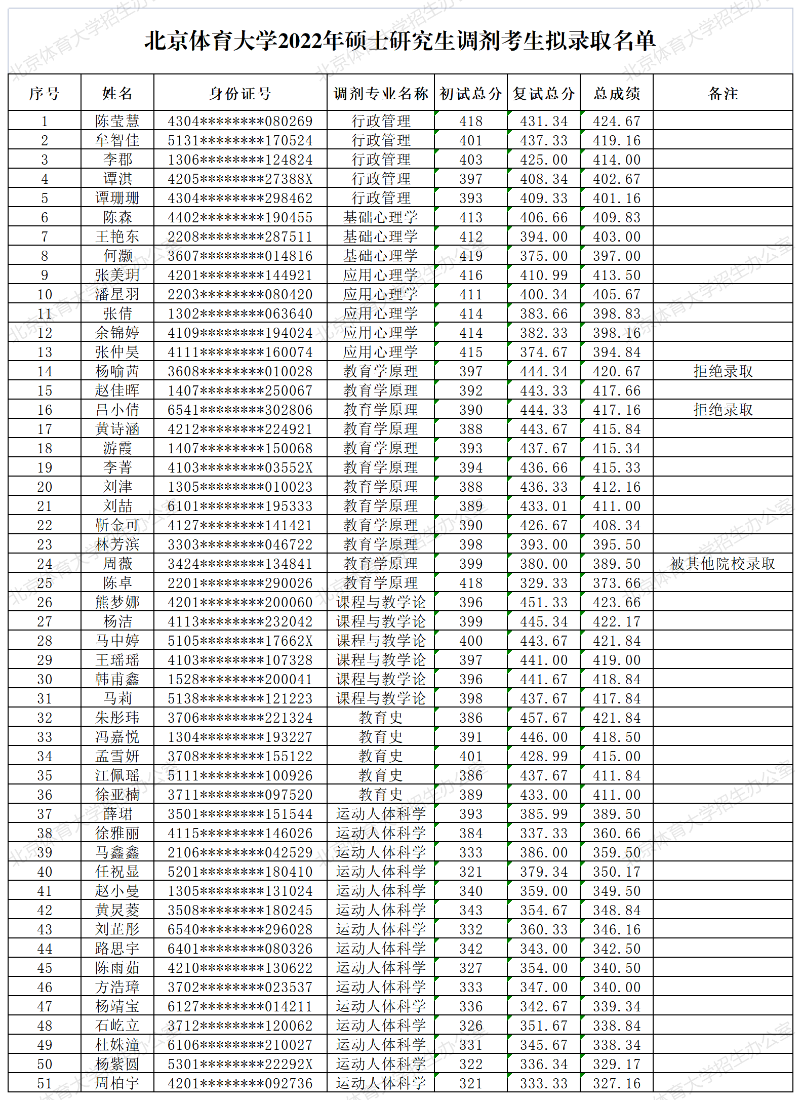 以上就是“2022拼搏在线官网拟录取名单:北京体育拼搏(中国)2022年硕士研究生调剂考生拟录取名单公示”的全部内容,更多录取名单相关内容请持续关注本网站。