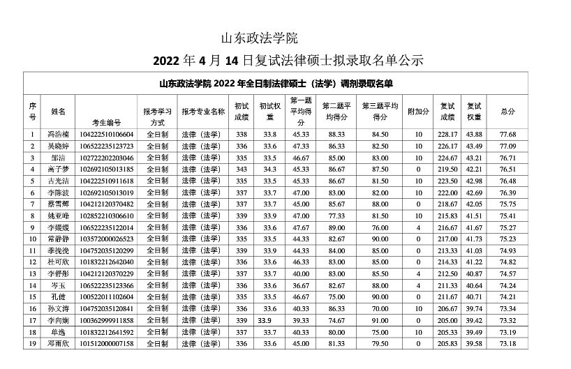 以上就是“2022拼搏在线官网拟录取名单:山东政法学院2022年4月14日复试法律硕士拟录取名单公示”的全部内容,更多录取名单相关内容请持续关注本网站。