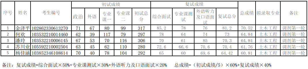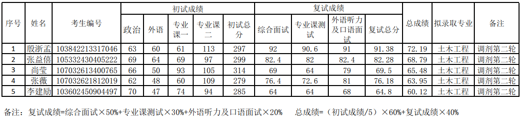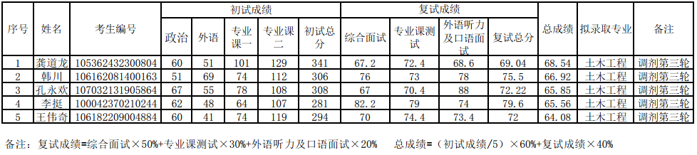 2022年土木工程硕士研究生调剂复试拟录取名单(第五轮)