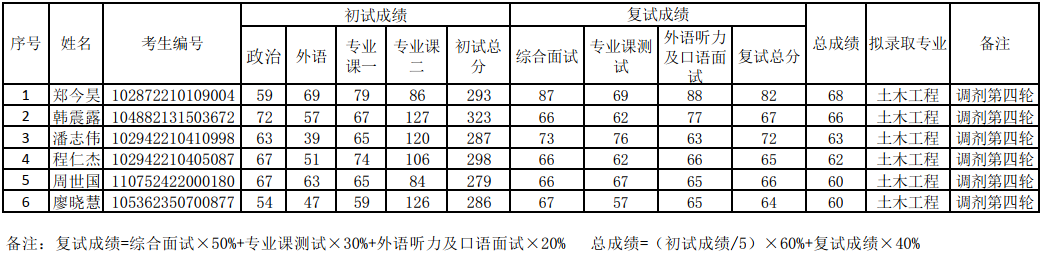 2022年土木工程硕士研究生调剂复试拟录取名单(第六轮)