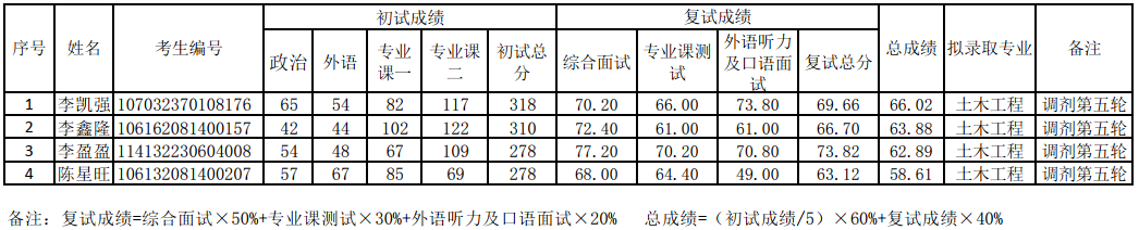 2022年土木工程硕士研究生调剂复试拟录取名单(第四轮)
