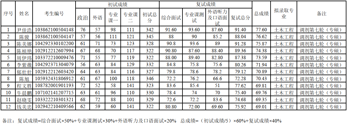 2022年土木工程硕士研究生调剂复试拟录取名单(第七轮)