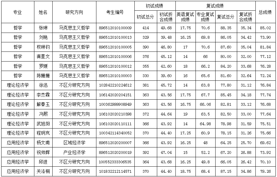 2022年四川省委党校学术学位硕士研究生复试成绩及拟录取名单公示