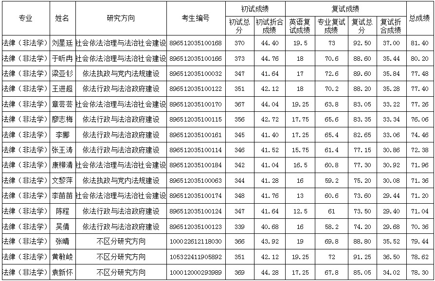 2022年四川省委党校法律(非法学)专业硕士研究生复试成绩及拟录取名单公示