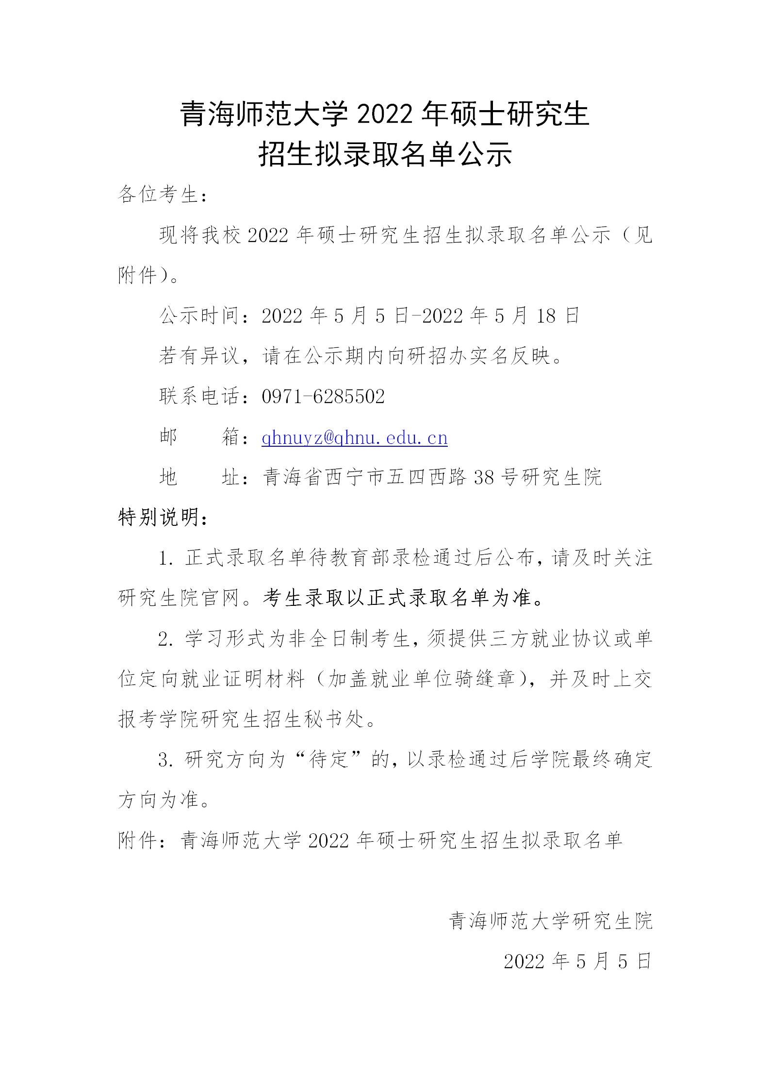 以上就是“2022拼搏在线官网拟录取名单:青海师范拼搏(中国)2022年硕士研究生招生拟录取名单公示”的全部内容,更多录取名单相关内容请持续关注本网站。