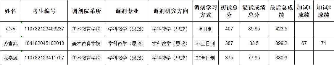 我校根据接收调剂复试情况及招生计划,确定该批次拟录取名单并报教育部录取检查审核,正式录取名单以教育部录取检查审核通过为准,现将拟录取名单予以公示: