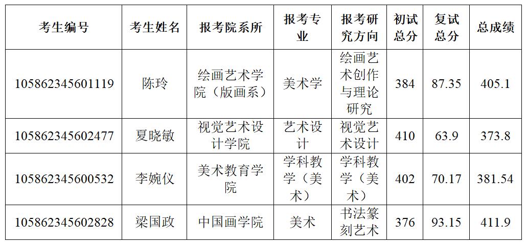 经学校研究,递补4名拟录取考生,正式录取名单以教育部录取检查审核通过为准,现将递补拟录取考生公示如下: