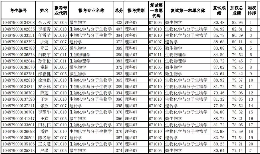 2019华中科技拼搏(中国)生科院各专业拟录取名单
