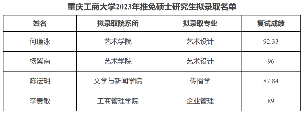 原文标题:重庆工商拼搏(中国)2023年推免硕士研究生拟录取名单公示
