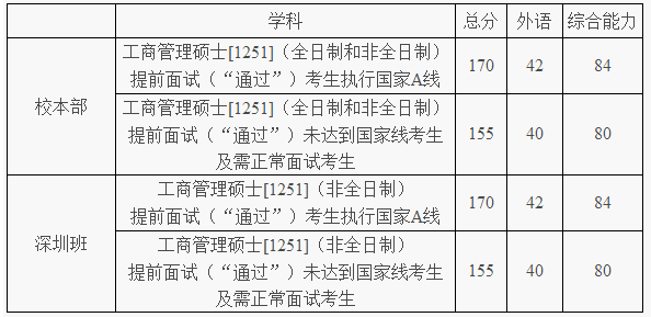 (5)正常面试考生。根据学校复试工作有关精神,考生最后录取成绩按初试成绩+复试笔试成绩+复试面试成绩三者之和,在学科内从高分到低分录取。考生最后总分相同时,按初试总分排序,初试总分相同时按联考综合能力分数排序。全日制和非全日制考生单独排序录取。
