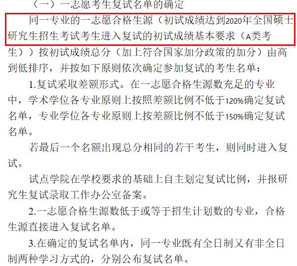 2020年全国硕士研究生招生考试考生进入复试的初试成绩基本要求(专业学位类)A类175/44/88