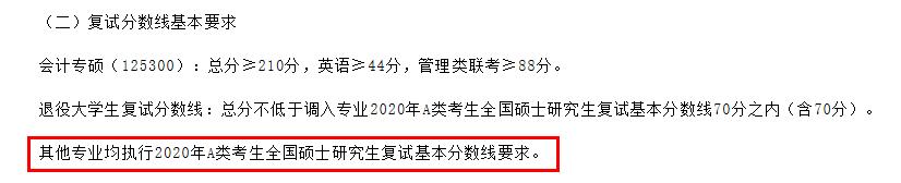 2020年全国硕士研究生招生考试考生进入复试的初试成绩基本要求(专业学位类)A类175/44/88