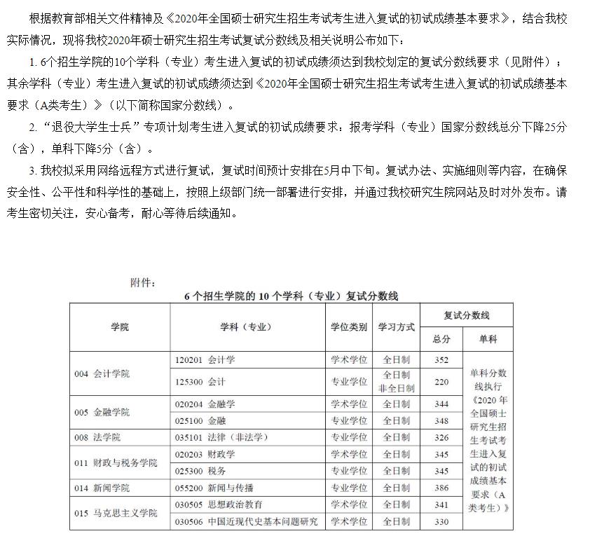 原文标题:南京财经拼搏(中国)2020年硕士研究生招生考试复试分数线