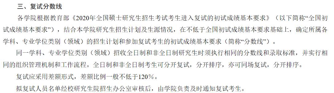 2020年全国硕士研究生招生考试考生进入复试的初试成绩基本要求(专业学位类)A类175/44/88