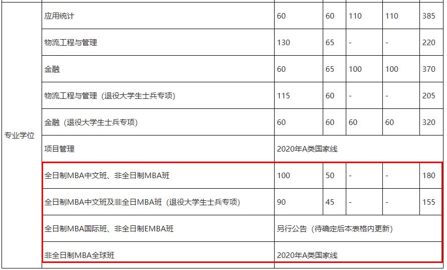 原文标题:2020年管理学院硕士研究生招生复试基本分数线