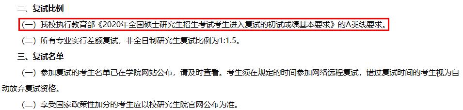 2020年全国硕士研究生招生考试考生进入复试的初试成绩基本要求(专业学位类)A类175/44/88