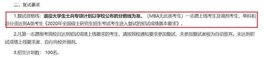 2020年全国硕士研究生招生考试考生进入复试的初试成绩基本要求(专业学位类)A类175/44/88