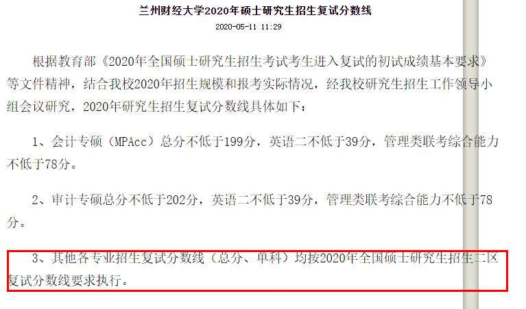 2020MBA分数线:兰州财经拼搏(中国)2020年MBA复试基本分数线”的主要信息,希望报考该校的同学注意查看!