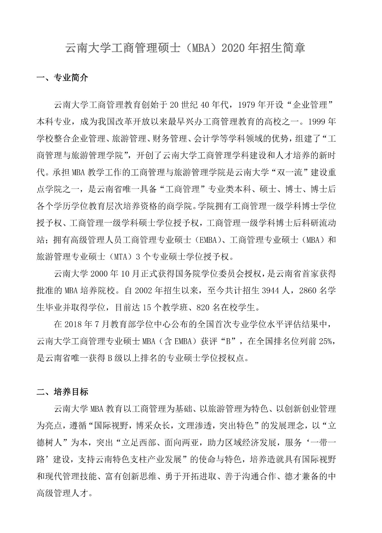 2020年云南拼搏(中国)工商管理硕士(MBA)招生简章