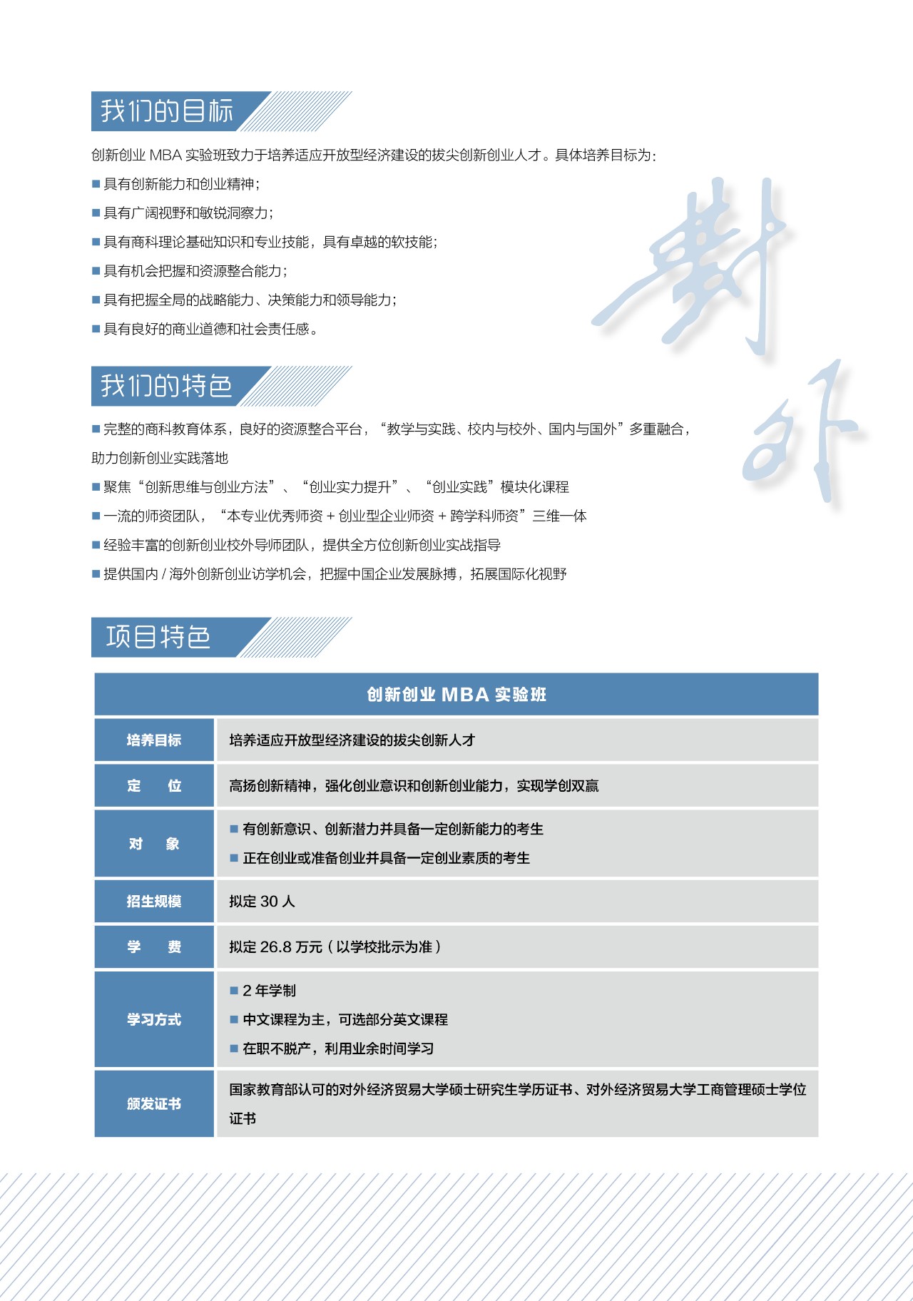 2020年对外经济贸易拼搏(中国)国际商学院创新创业MBA实验班招生简章